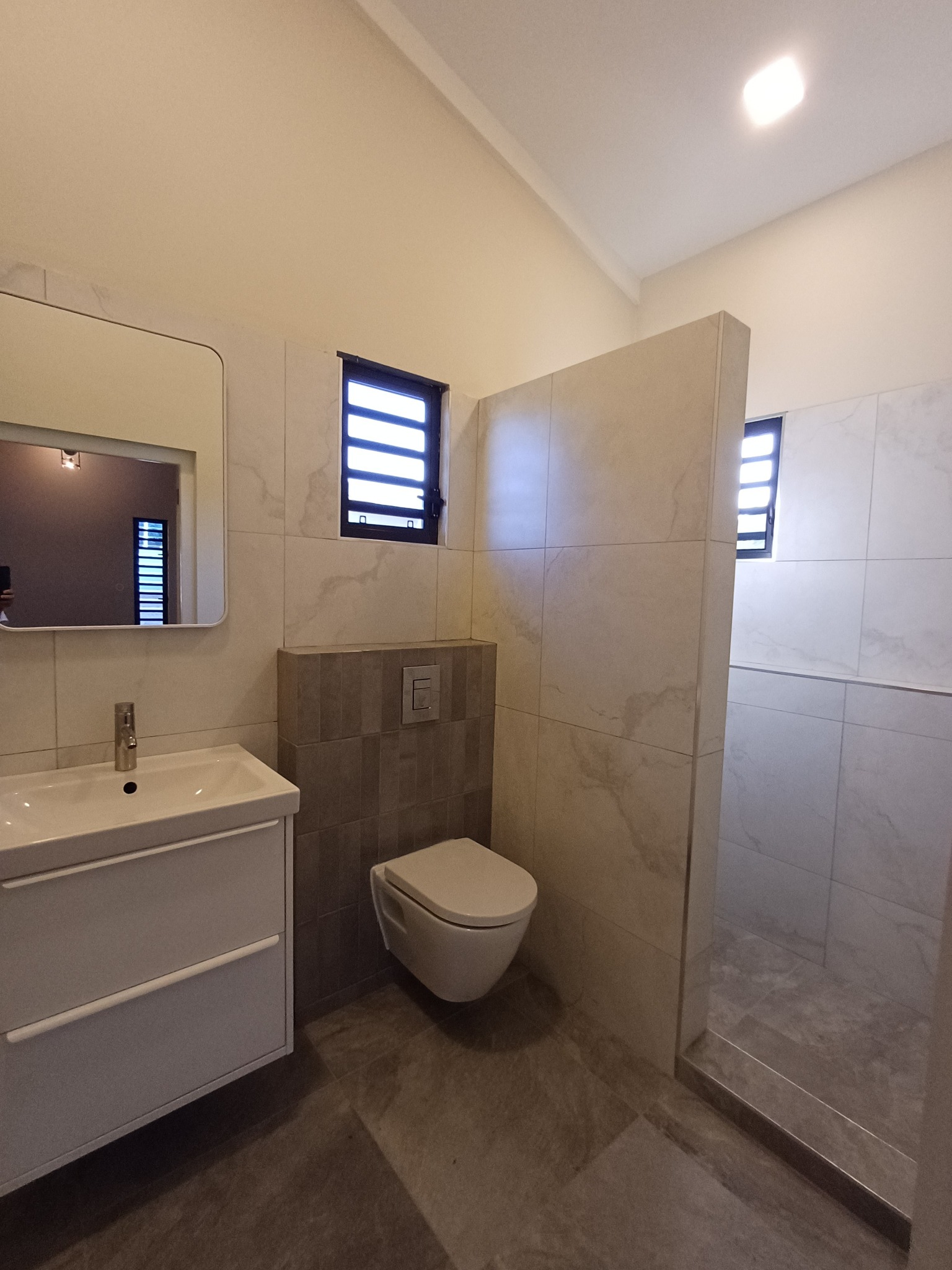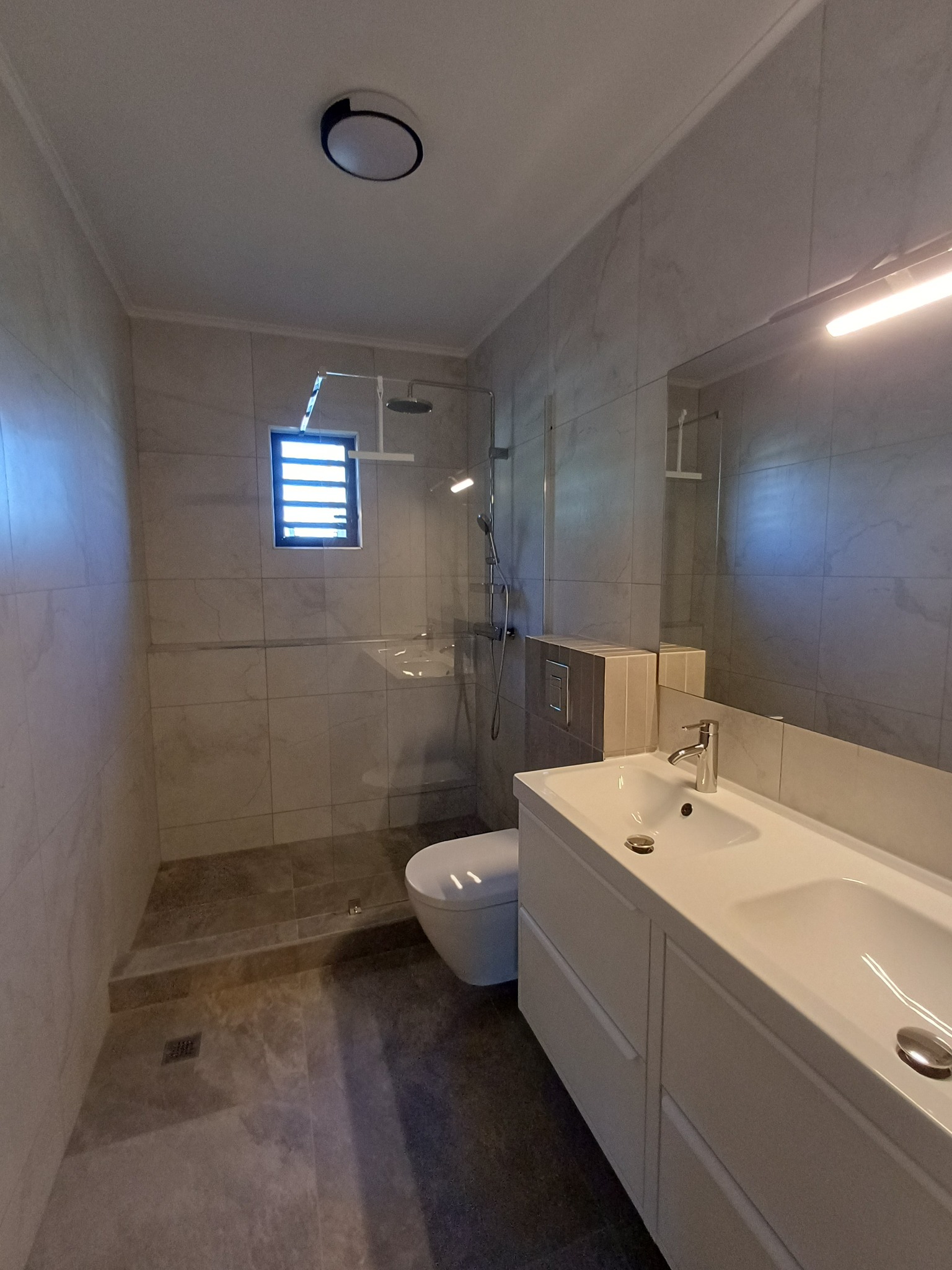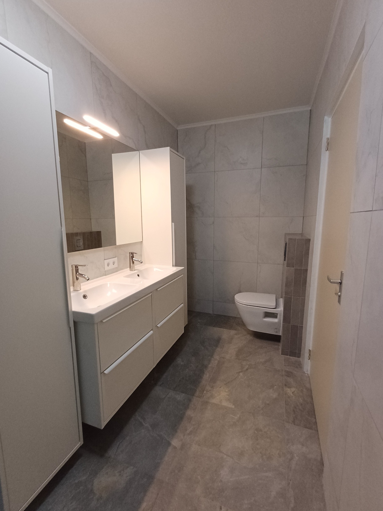 2 eigentijdse badkamers met warm water